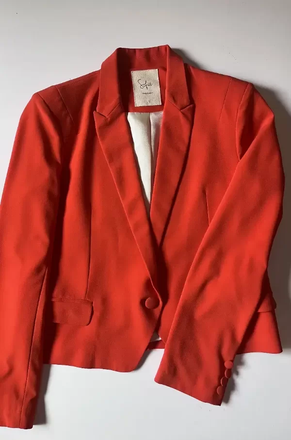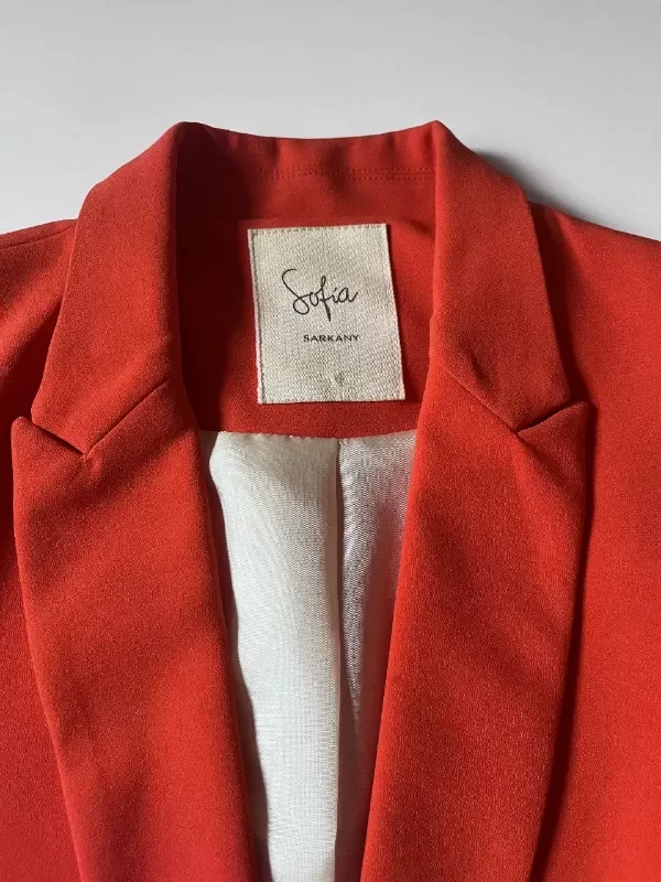 Elegante blazer rojo de la marca Sofia Sarkany, ideal para un look formal o de trabajo. Confeccionado con materiales de alta calidad, este blazer ofrece un ajuste perfecto y un estilo sofisticado. Perfecto para combinar con pantalones sastreros o faldas.