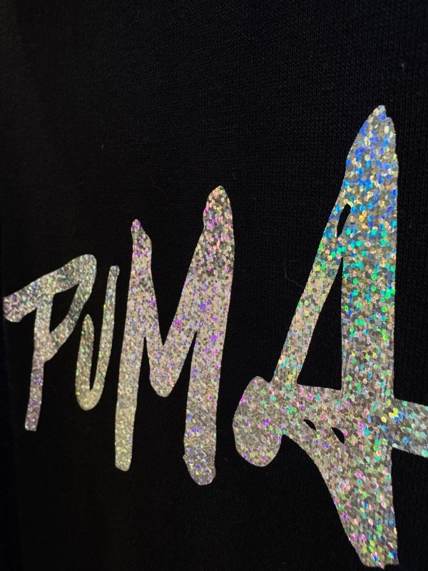 Buzo algodón con gráfico iridiscente en el pecho.