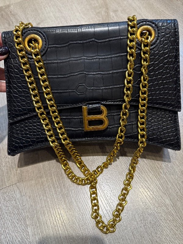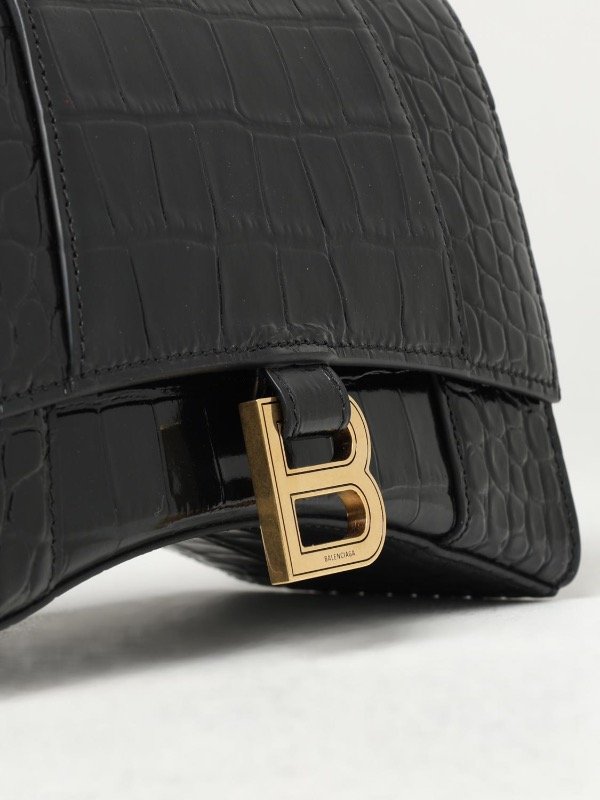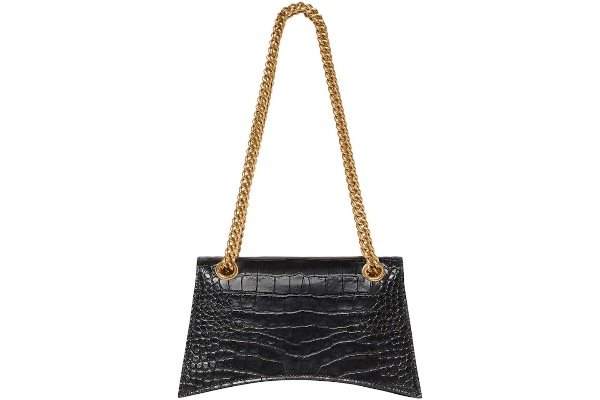 Balenciaga Bolso bandolera Crush Chain Pequeño Cocodrilo Negro Relieve