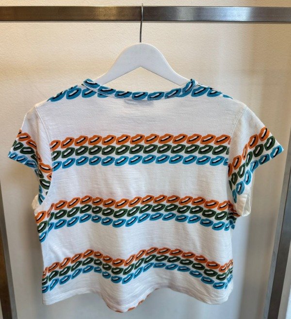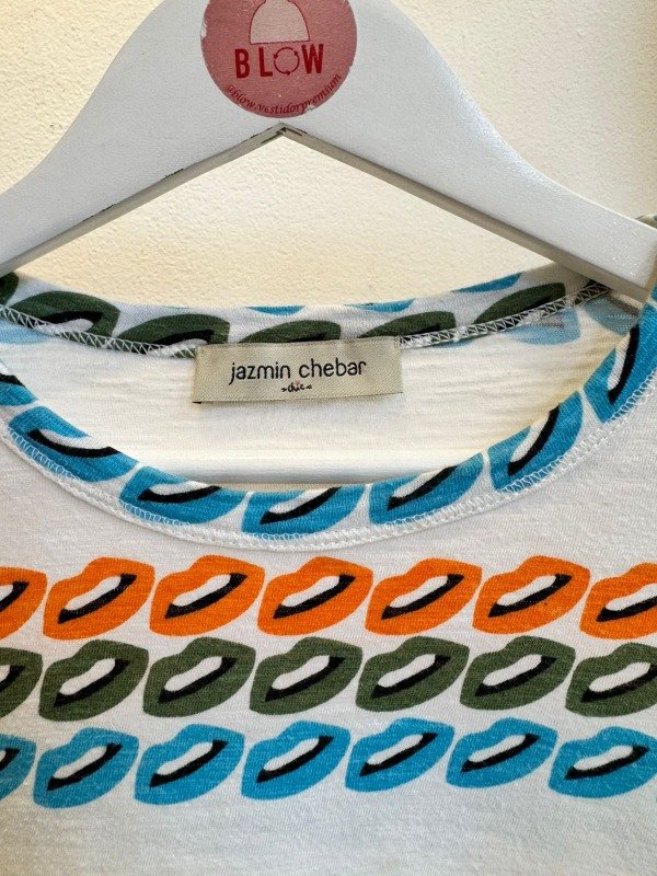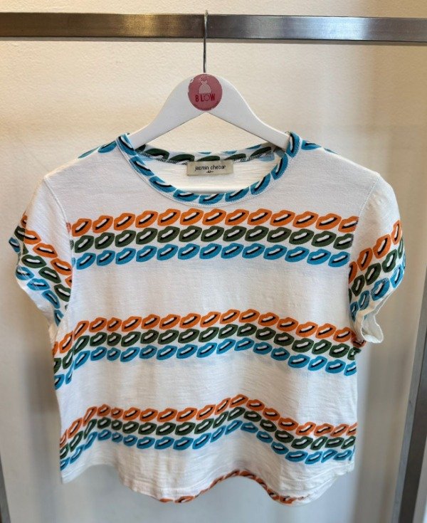 Remera de jersey de algodón, de fit línea A, cuello redondo y manga corta. Forma con caída que da comfort, una remera clásica de Jazmin Chebar ideal para acompañar con cualquier prenda.100% Algodón