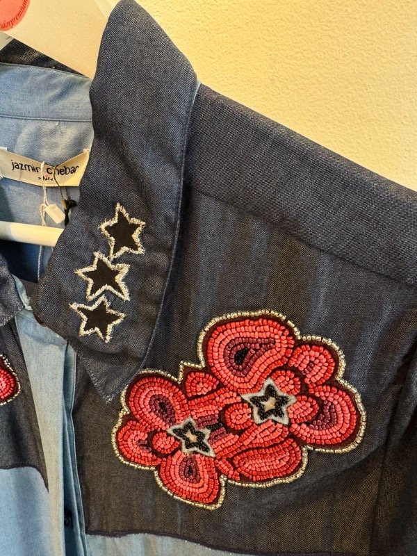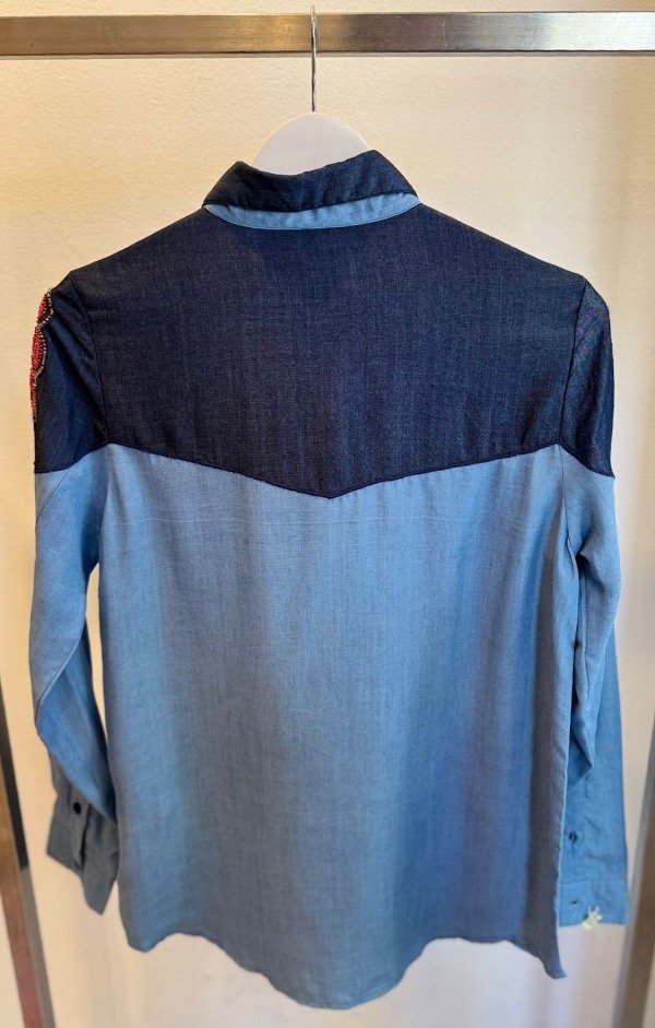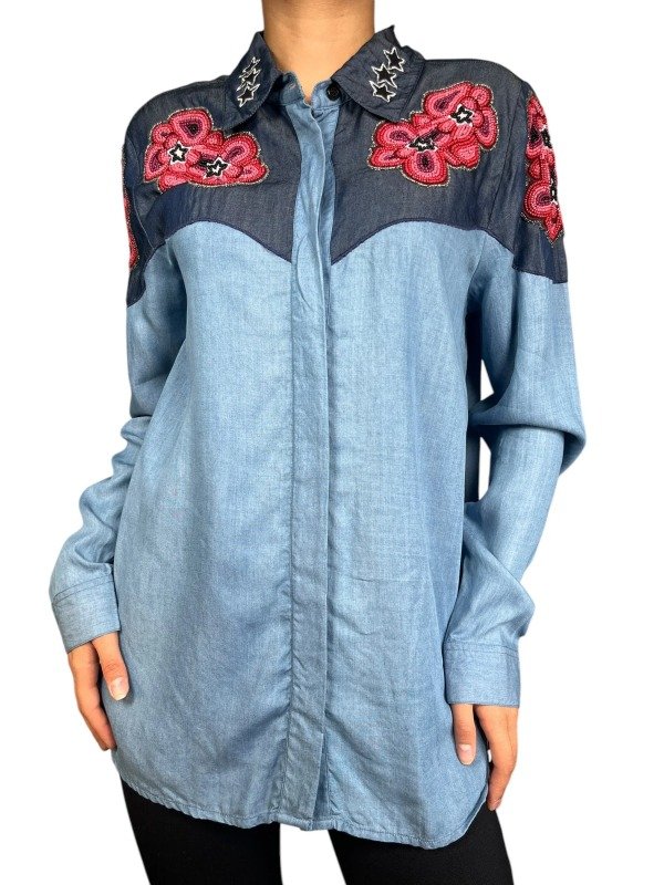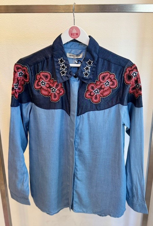 Camisa West de calce slim, manga larga confeccionada en tejido 100% algodón. Viene con bordados de corazones en el frente.