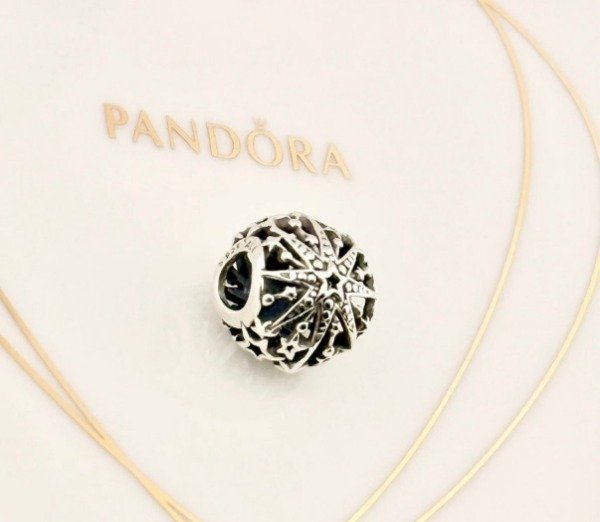 Este tipo de charms suelen representar la guía, la protección y la magia. Por su diseño calado, es una pieza ligera que permite ver la pulsera a través del dije, lo que lo hace muy elegante para combinar con otros charms de temática similar (lunas, planetas o signos del zodíaco).